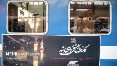 آیین بدرقه زائران اربعین حسینی (ع) در راهآهن تهران منبع:مهر